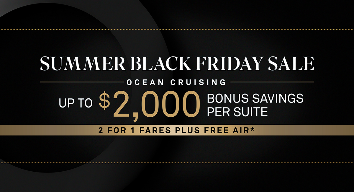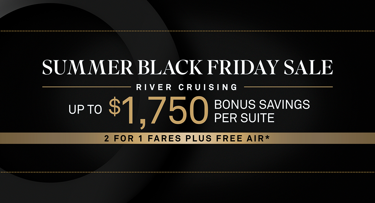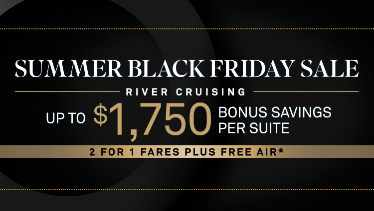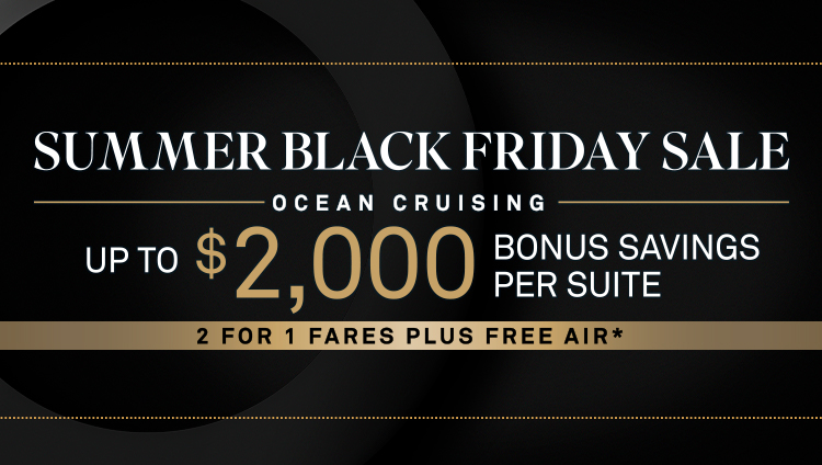 Summer Black Friday Savings: Bonus savings of up to $1,750 per suite ($875pp) are available on select departures. Savings vary by departure. Combinable with 2 for 1 Fares and Pay in Full offers; not combinable with Scenic Select. Deposit required at time of booking.