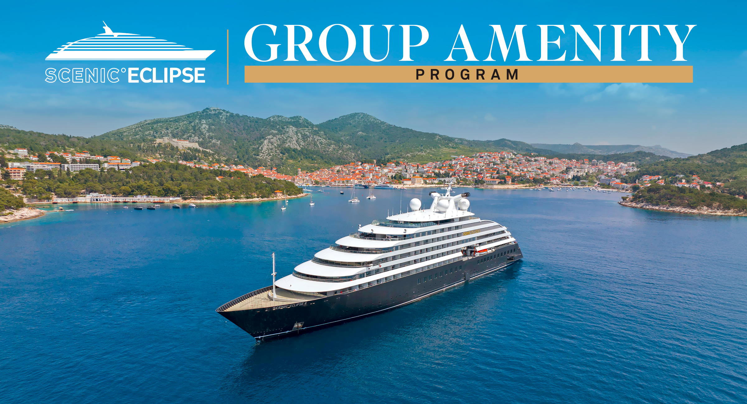 Available for new group agreements made between January 1, 2025 - December 31, 2025, on Scenic Eclipse and Scenic Eclipse II for departures in 2025, 2026 & 2027. Group amenity program is available for new Group Agreements on select Scenic Eclipse and Scenic Eclipse II. Onboard Credit is in US dollars and can be used on board Scenic Eclipse and Scenic Eclipse II towards Spa, helicopter, submersible, and medical services. Up to a maximum of $150 per person value of your onboard credit may be used toward helicopter or submersible